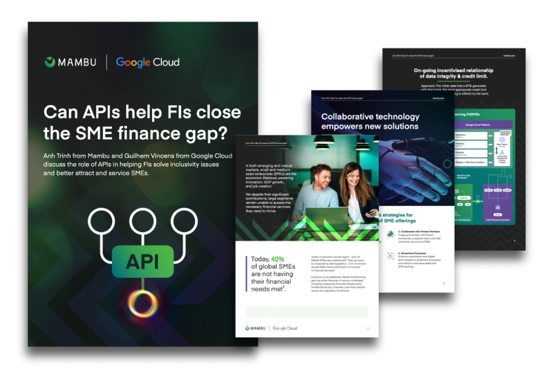 In our latest report, Mambu and Google Cloud explore the role of APIs in helping FIs solve inclusivity issues and better attract and service SMEs.