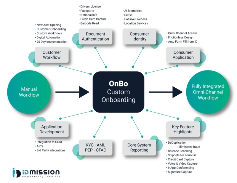 IDmission concentrates on financial service applications that provide end to end solutions such as customer onboarding, loan originations and other applications where customer ID and Identity is key for completing a process.