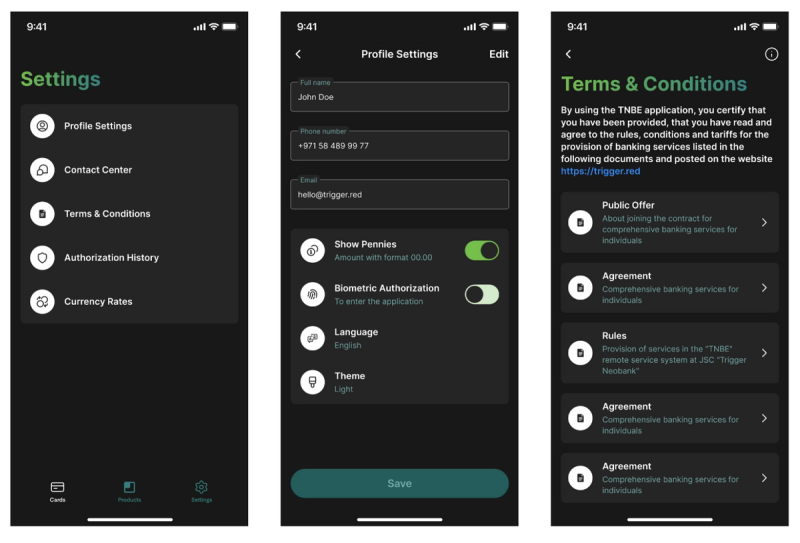 Interface Constructor allows users to easily configure the interface both for iOS and Android apps. Trigger Neobank Engine renders the JSON into beautiful screens that can be instantly changed without the need to update the app on App Store or Google Play market.