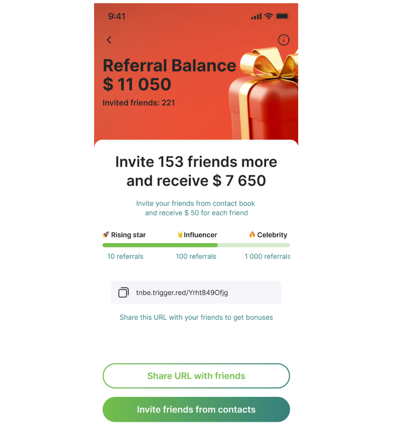 Allow clients to share the benefits of the digital bank with their friends and family, and earn rewards for every successful referral.